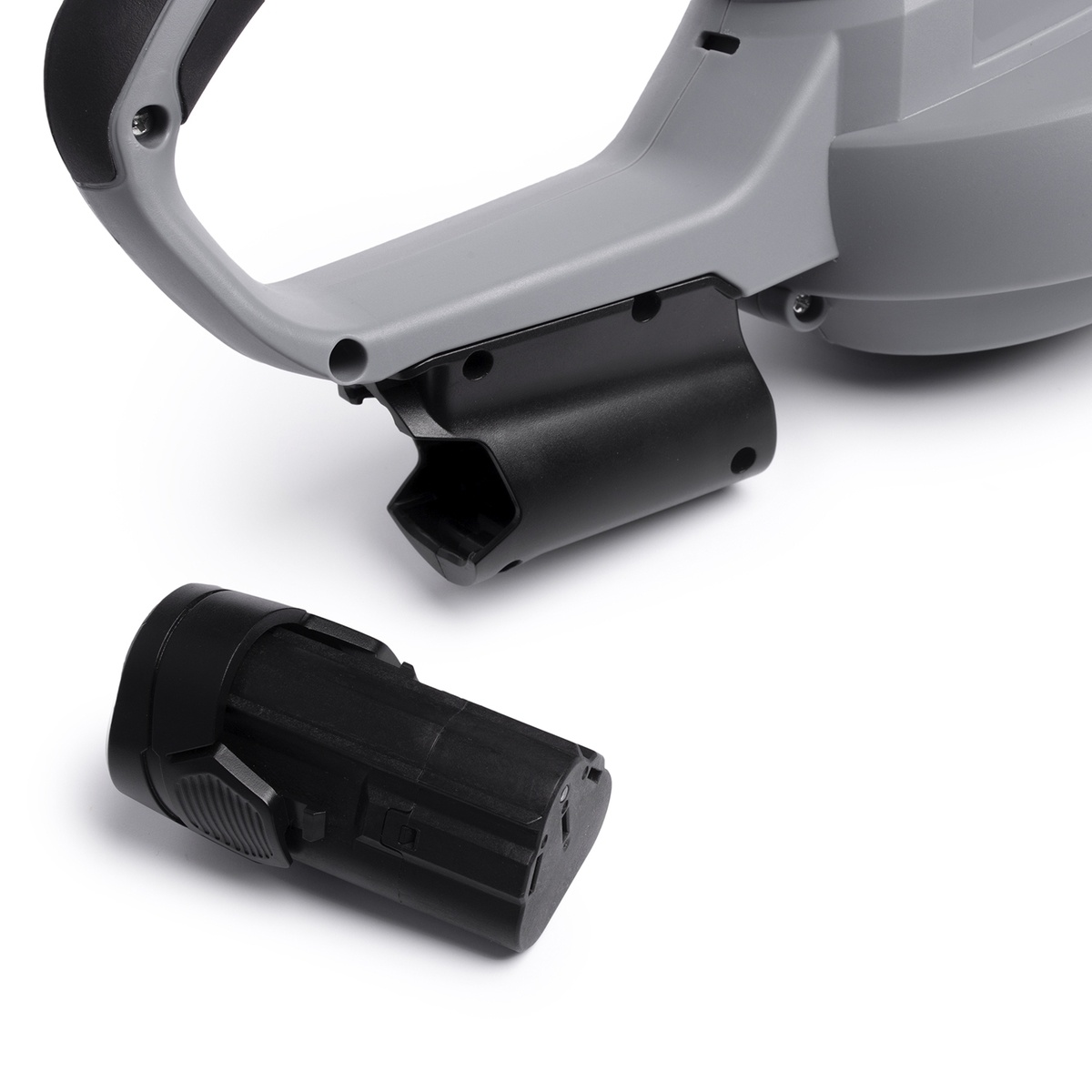 De bladblazer is uitgerust met een zachte, ergonomische handgreep die prettig in de hand ligt. Dankzij het lichte gewicht manoeuvreert u eenvoudig tussen planten, bloembakken of tuinmeubels – zonder vermoeid te raken, ook niet na langer gebruik.