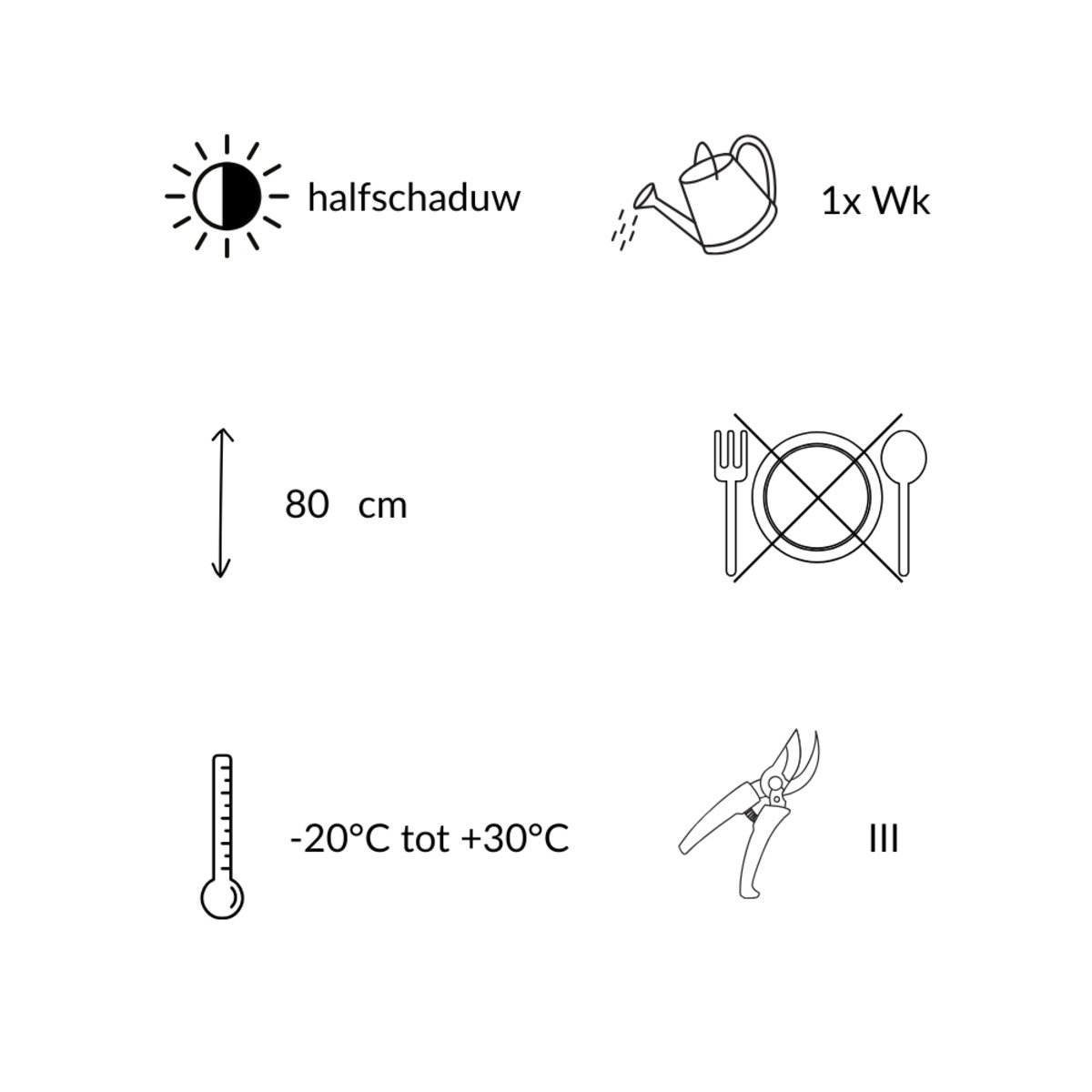 • Volgroeide hoogte: circa 80 cm