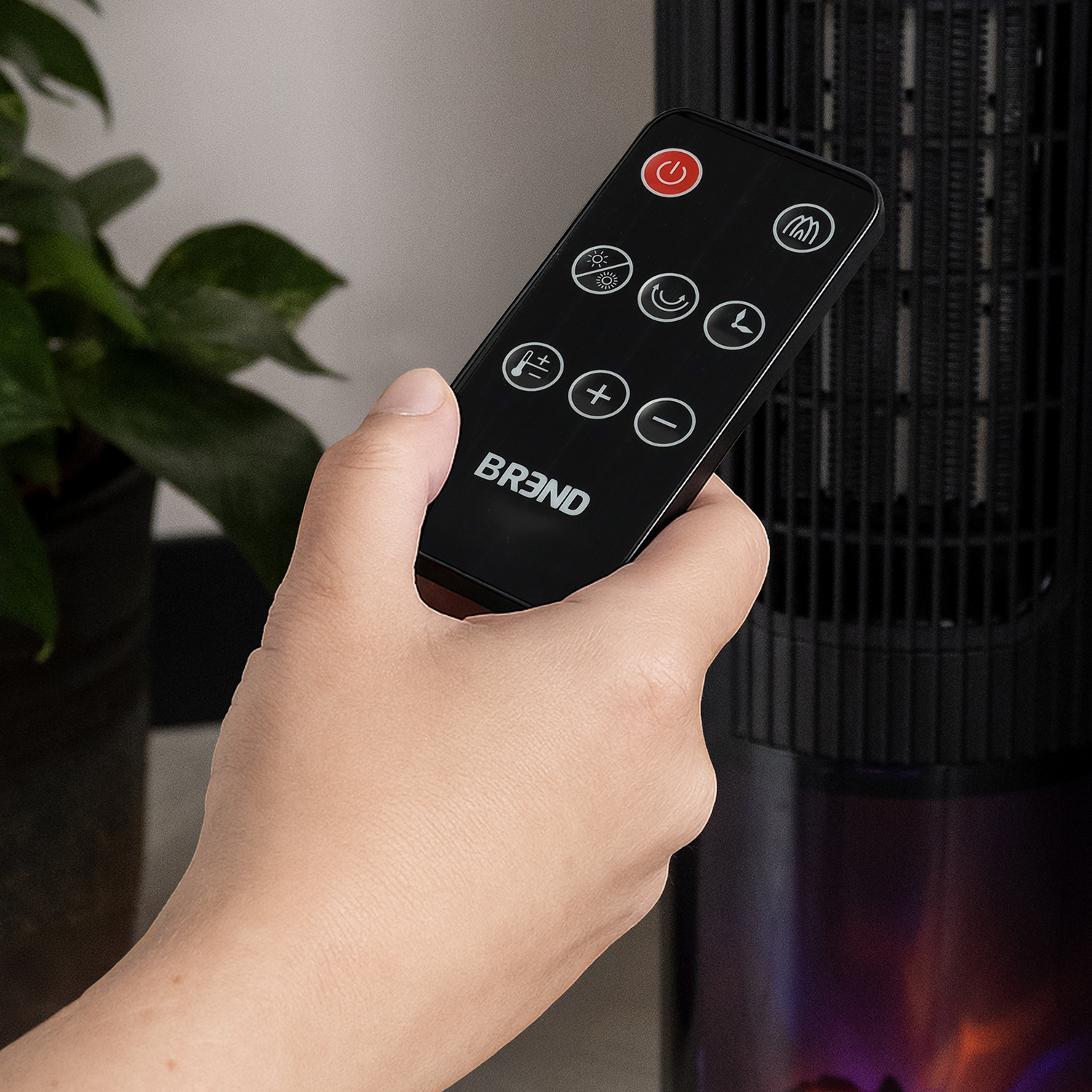 De torenkachel met vlammenspel is gemakkelijk te bedienen dankzij touchscreen en de bijgeleverde afstandsbediening. De thermostaat van de elektrische kachel is instelbaar van 18 tot 45 °C. Bovendien is de elektrische kachel uitgerust met een timer instelbaar tot 8 uur met intervallen van steeds één uur. Zo blijft de kachel nooit te lang verwarmen, wel zo energievriendelijk. De elektrische kachel ventilator en sfeerhaard heeft tot slot dubbele isolatie, oververhittings- en kantelbeveiliging voor een zorgeloos gebruik.