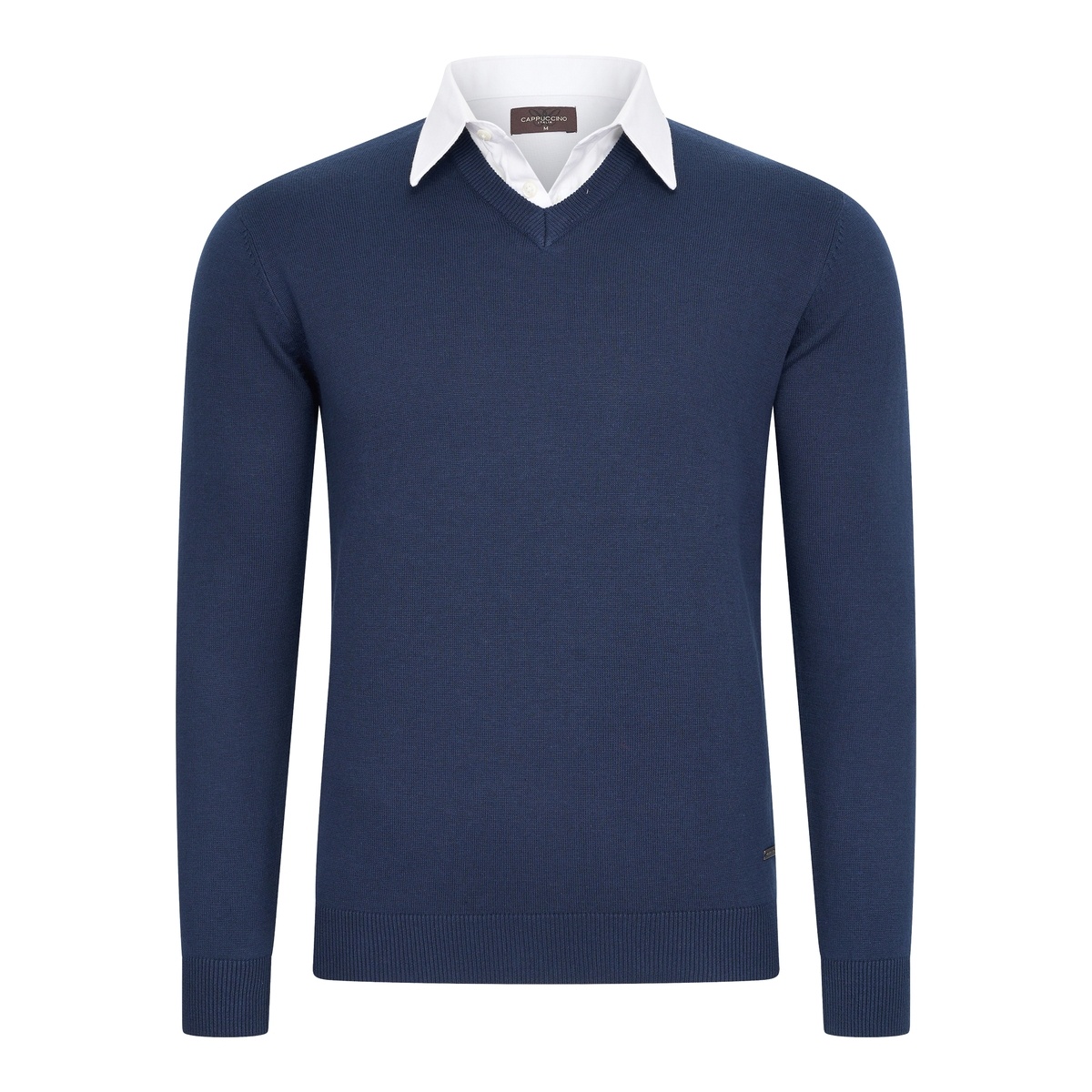 Ravenna Mock Trui met V-Hals en Overhemdkraag