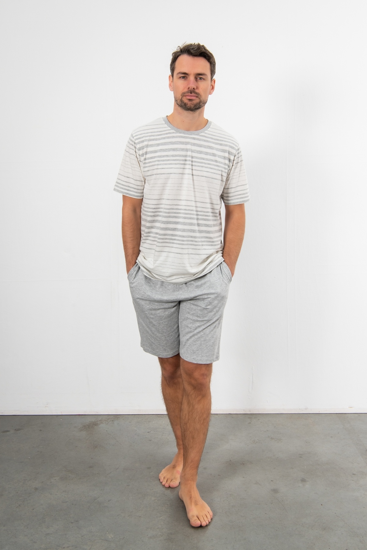 De Cappuccino Venezia Pyjama Set combineert moderne stijl met praktische details. Het T-shirt heeft een eigentijds gestreept patroon en een comfortabele ronde hals. De bijpassende korte broek beschikt over een elastische tailleband, waardoor deze altijd perfect aansluit en veel bewegingsvrijheid biedt.