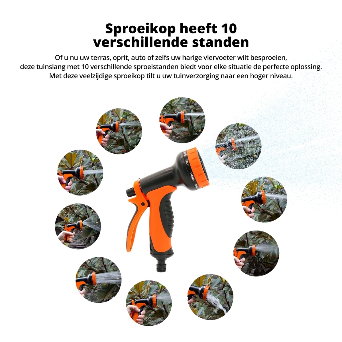 De tuinslang met 10 verschillende sproeistanden biedt de perfecte oplossing voor het besproeien van uw terras, oprit, gevel of auto. Met deze veelzijdige sproeikop kunt u uw tuinverzorging naar een hoger niveau tillen, of het nu gaat om delicate bloemen, krachtig reinigen van de oprit of het wassen van uw voertuig. De tuinslang is ontworpen voor gebruiksgemak en optimale prestaties in elke tuinsituatie.