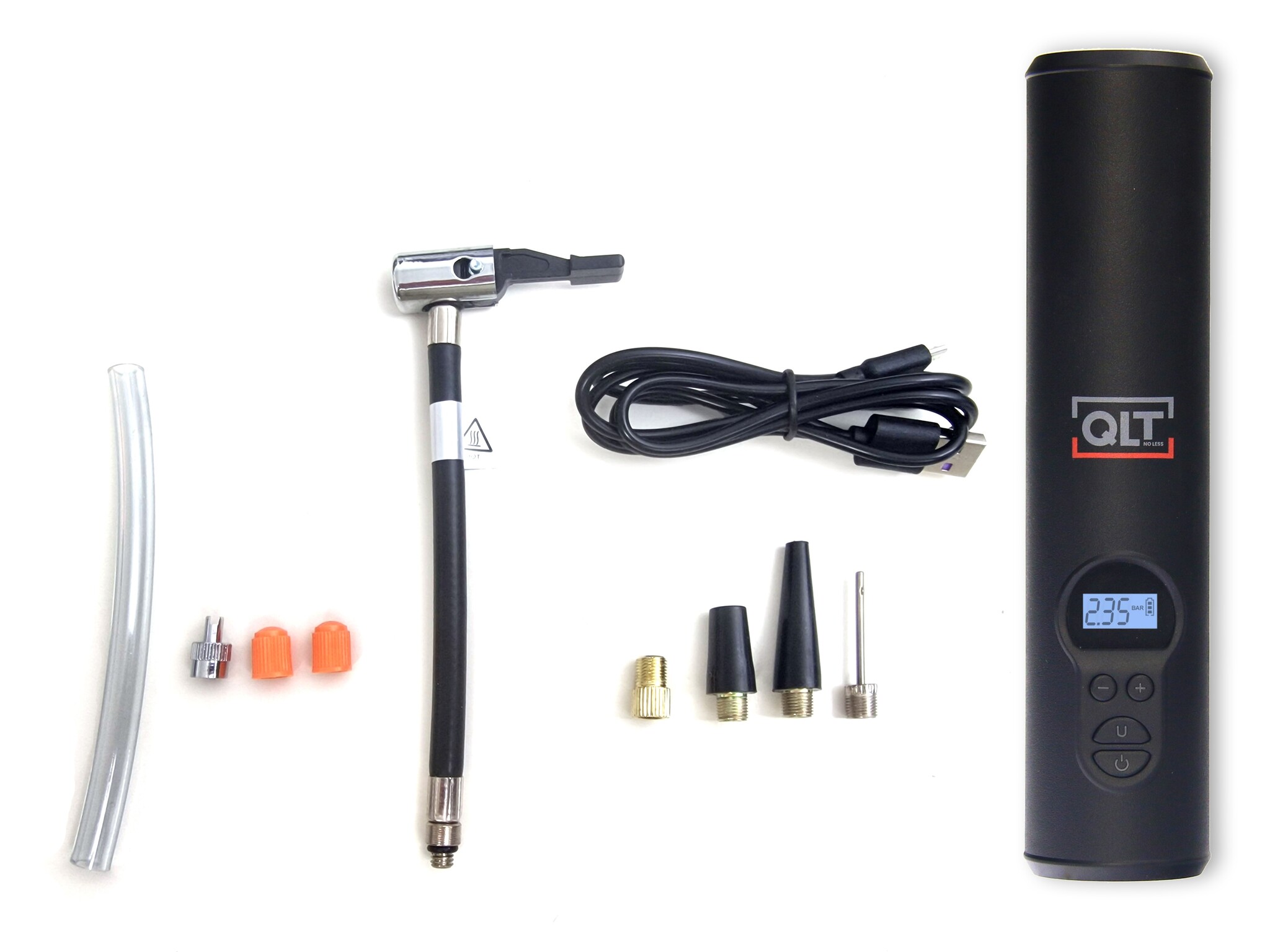 De QLT compressor wordt geleverd met vier verschillende opzetstukken die geschikt zijn voor de meest voorkomende voorwerpen. Het is ideaal voor alles wat lucht nodig heeft, zoals bijvoorbeeld een luchtbed, dat normaal met de mond opgeblazen moet worden. Maar ook tijdens fietstochten kan de draadloze elektrische pomp goed van pas komen en staat u nooit meer met zachte banden.