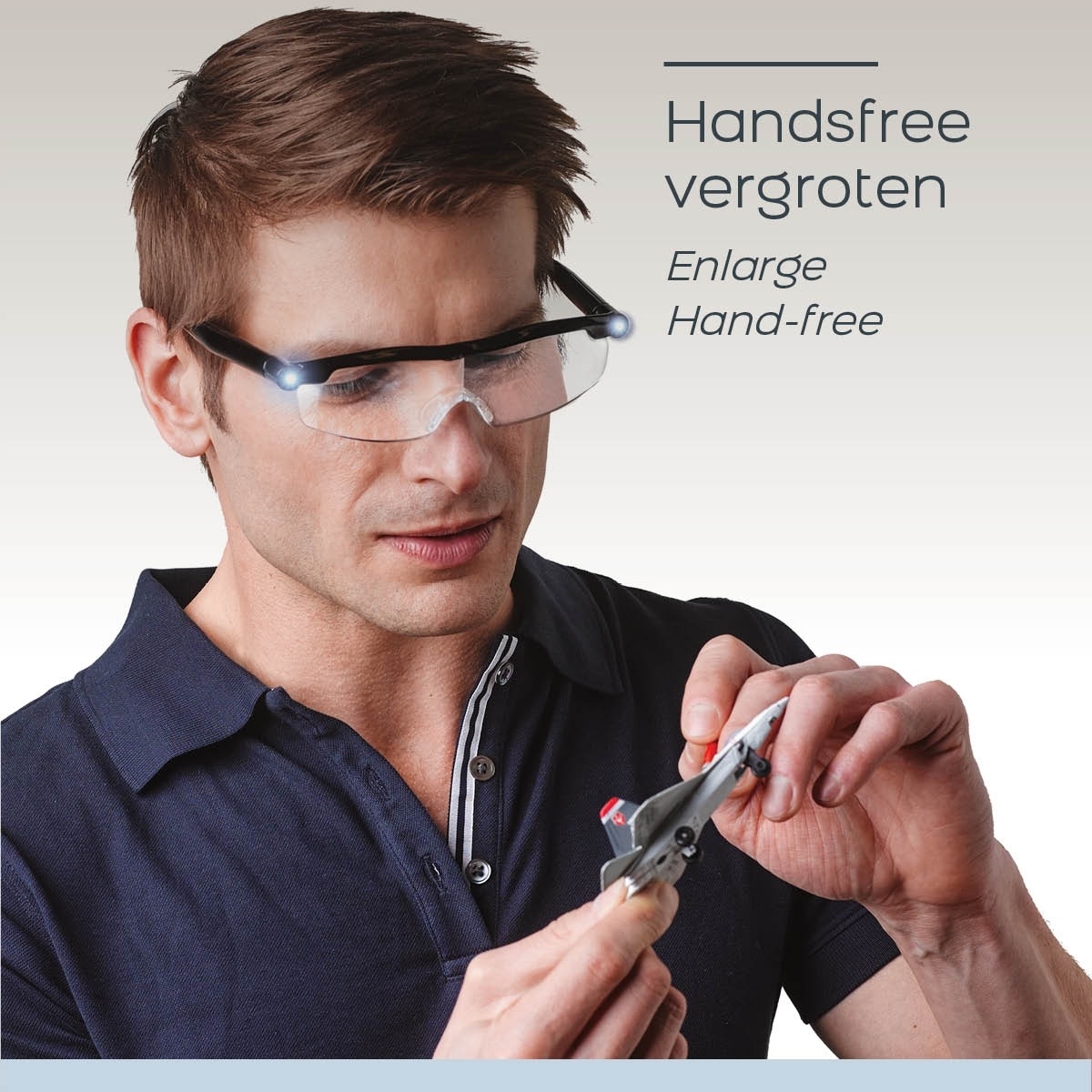 Met deze vergrootglas bril heeft u uw handen volledig vrij. Of u nu aan het knutselen bent, modelbouw doet of kleine reparaties uitvoert: de Mighty Sight maakt het makkelijker én comfortabeler. De ingebouwde Ledverlichting zorgt voor extra helderheid, ook bij weinig licht.