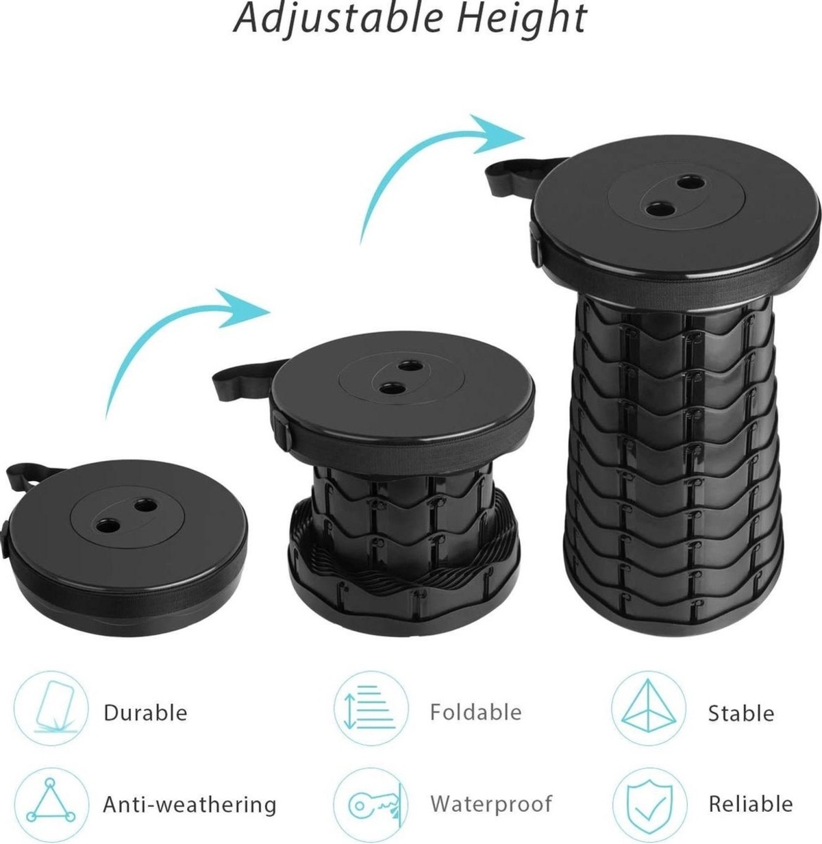 ✔ Verstelbare hoogte Met de opvouwbare kruk kunt u de hoogte aanpassen, zodat het zitcomfort altijd aan uw wensen voldoet. U kunt de stoel uitklappen tot een indrukwekkende hoogte van 45 cm, waardoor het een ideaal krukje is voor onderweg!
