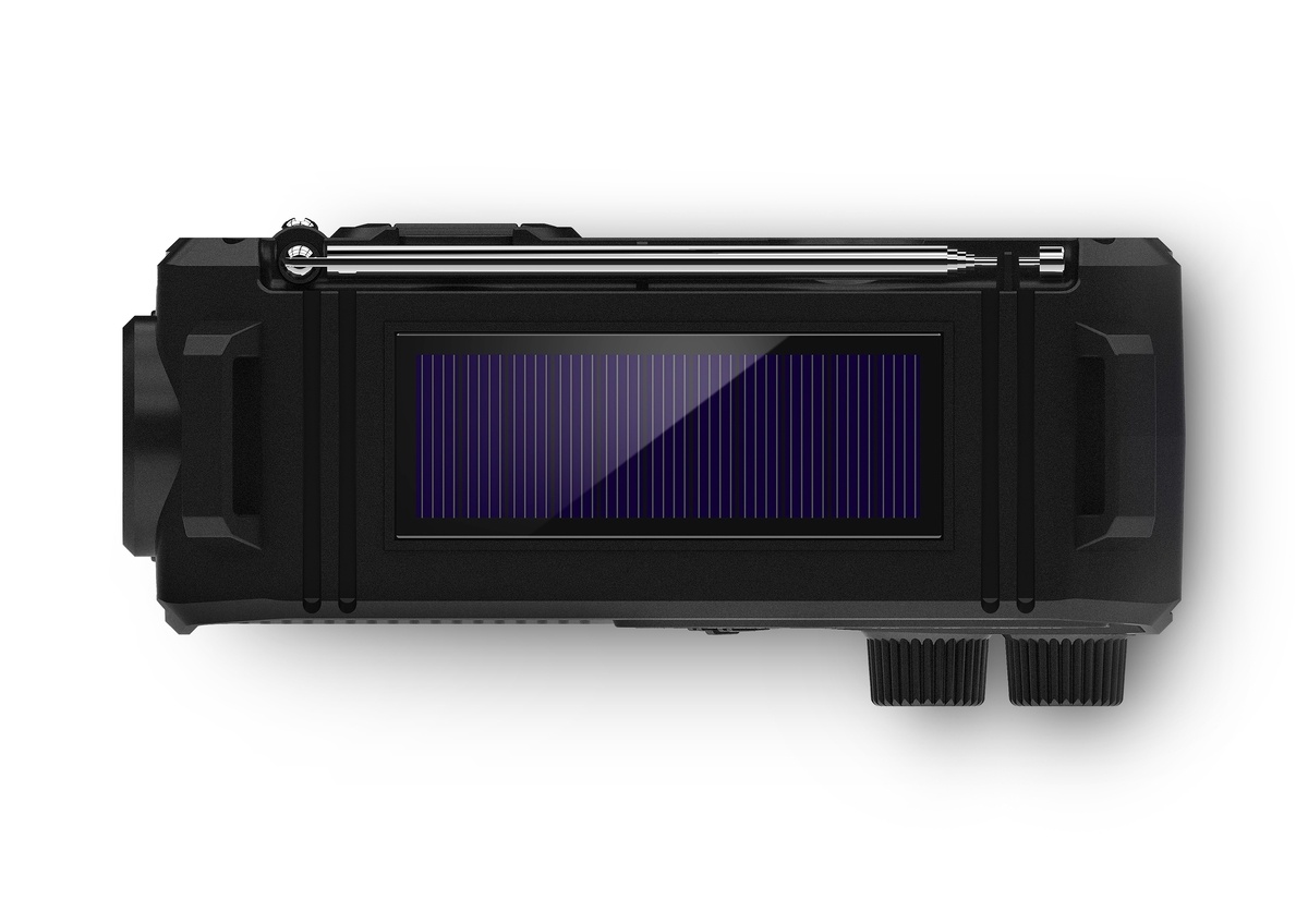• Opladen via: USB-C, zonnepaneel, handslinger