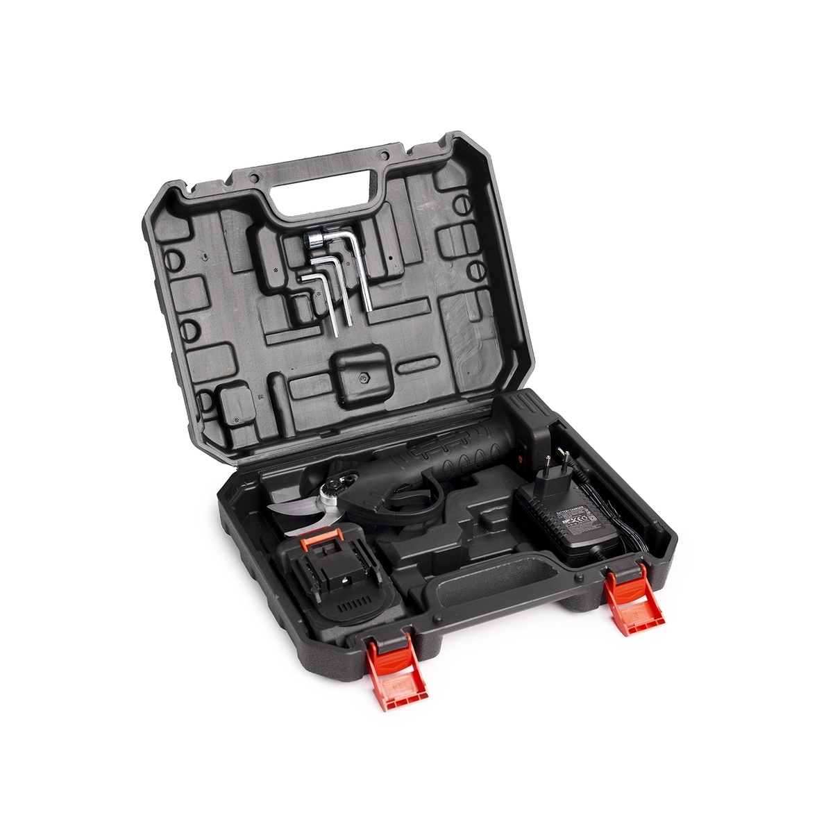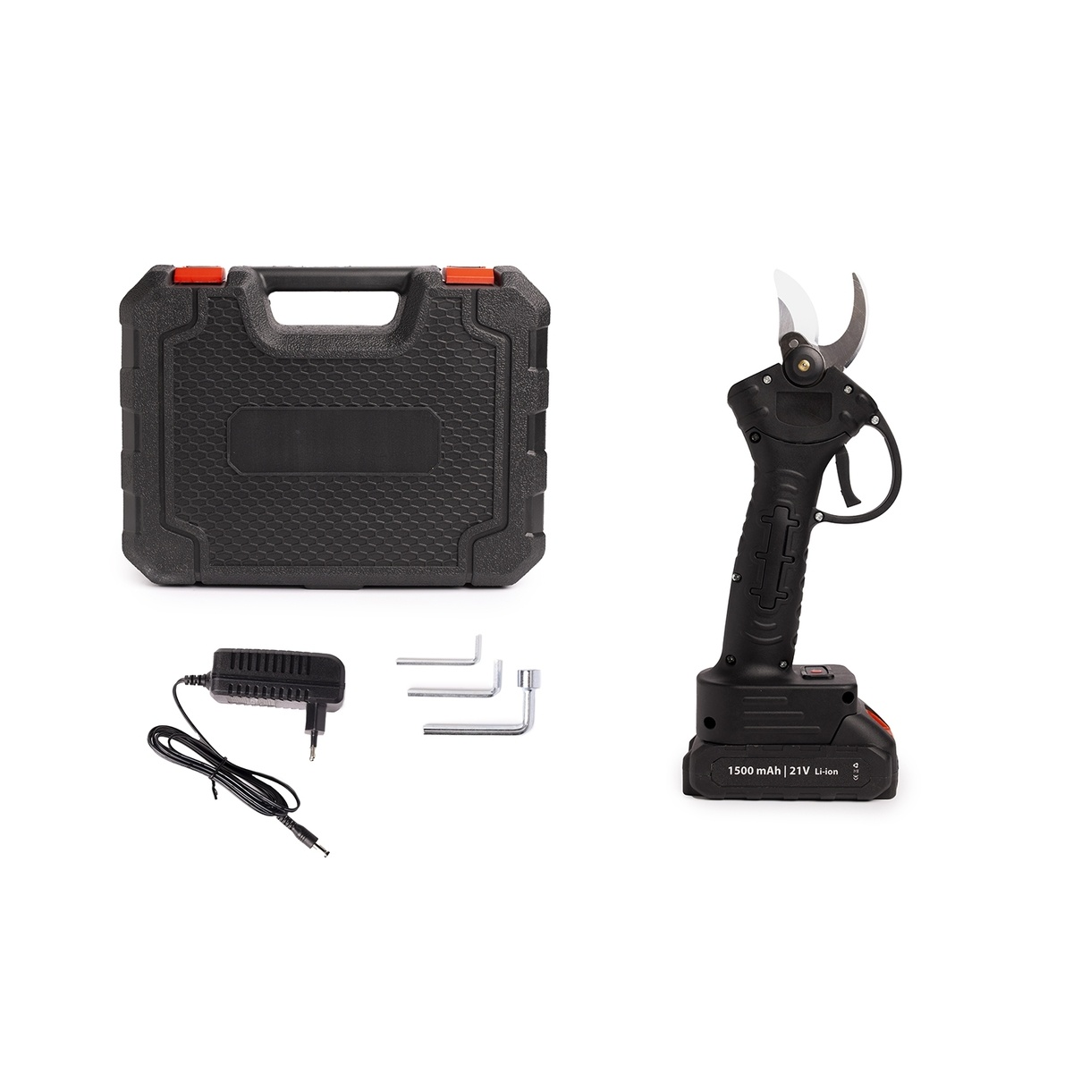 De elektrische snoeischaar wordt geleverd met alle benodigde gereedschappen voor eenvoudig onderhoud en reparaties. Daarnaast krijgt u er een praktische opbergkoffer bij, zodat u de heggenschaar veilig en gemakkelijk kunt meenemen.