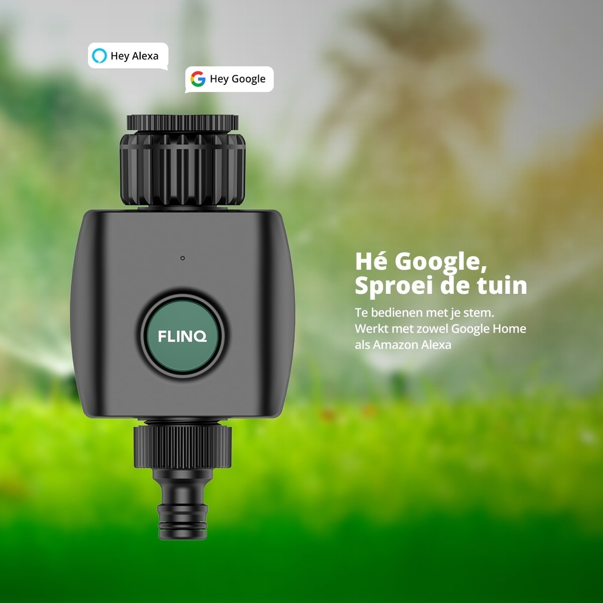 Het slimme irrigatiesysteem van FlinQ installeert u direct op uw waterkraan (past op iedere waterkraan*).