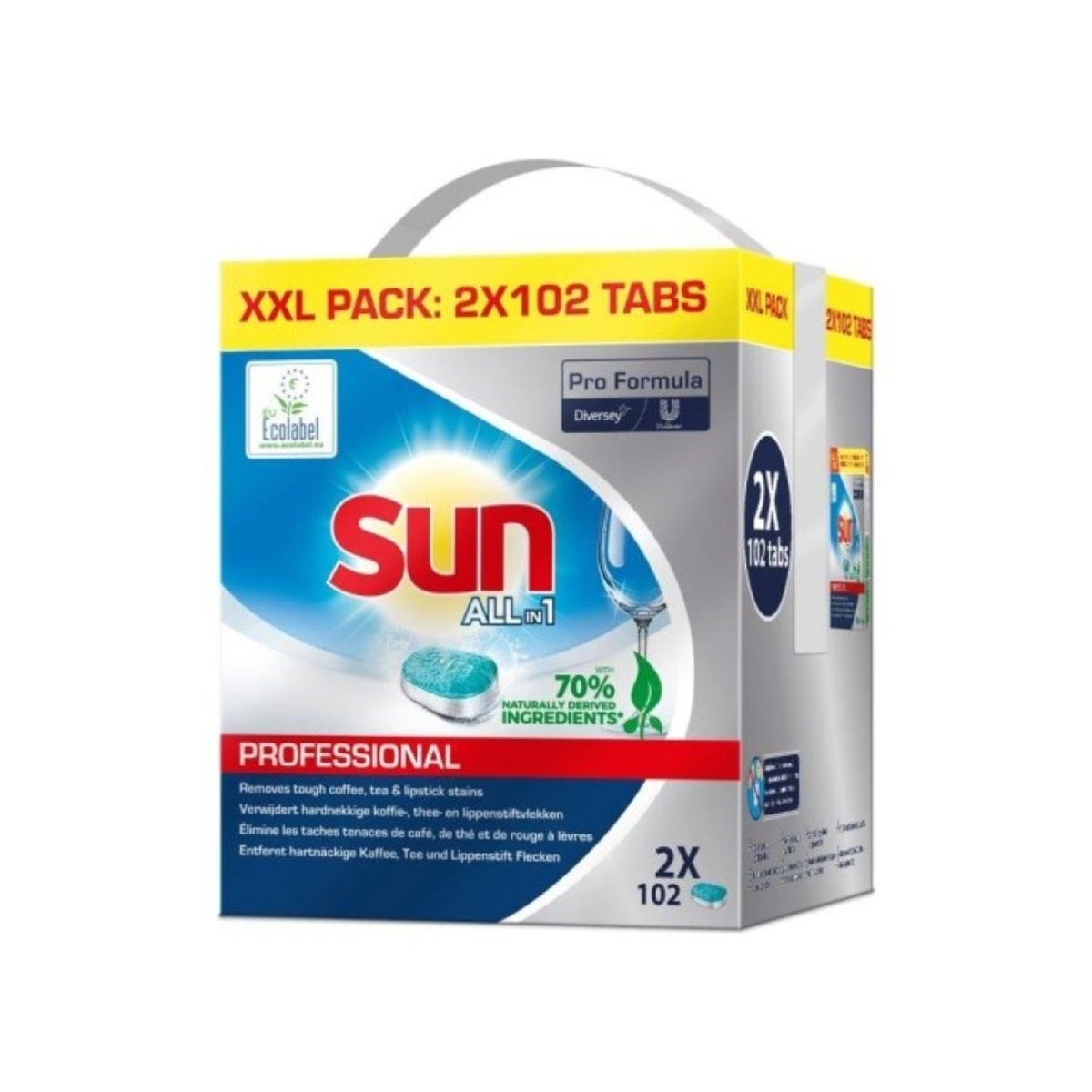 Met de Sun All-in-one Vaatwastabletten bent u verzekerd van een glanzend schone vaat en een goed onderhouden vaatwasmachine. Dankzij de krachtige, fosfaatvrije formule geniet u van een stralend resultaat, zelfs bij lage temperaturen.