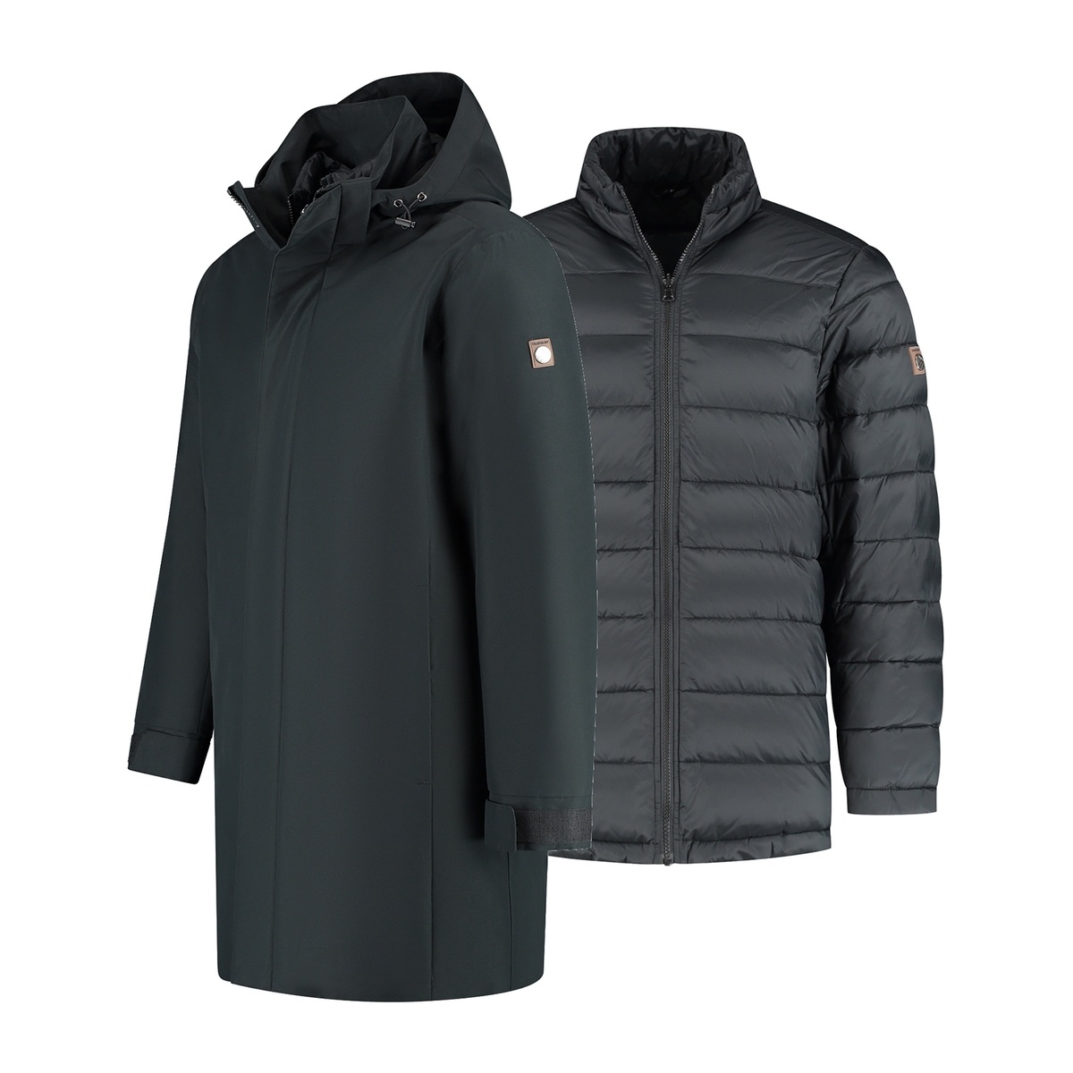 De binnenjas is korter van lengte, licht gewatteerd en voorzien van handige steekzakken met rits. Perfect als tussenjas voor de herfst of droge winterdagen. Samen met de buitenjas vormt hij een warme en betrouwbare bescherming tegen gure kou en regen. Bovendien is de jas PFAS-vrij geproduceerd, een bewuste keuze voor duurzaamheid.