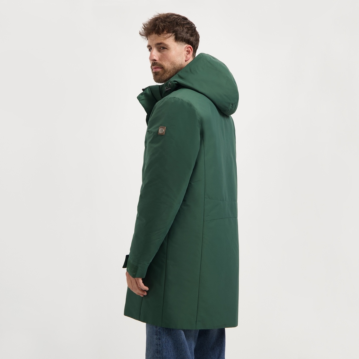 De 2-way rits biedt flexibiliteit, terwijl de placket met klittenband en drukknopen regen en wind effectief buitenhoudt. De afneembare, verstelbare capuchon is gevoerd met dezelfde stof als de buitenzijde, wat de jas een strakke en moderne uitstraling geeft.