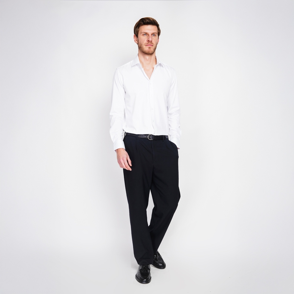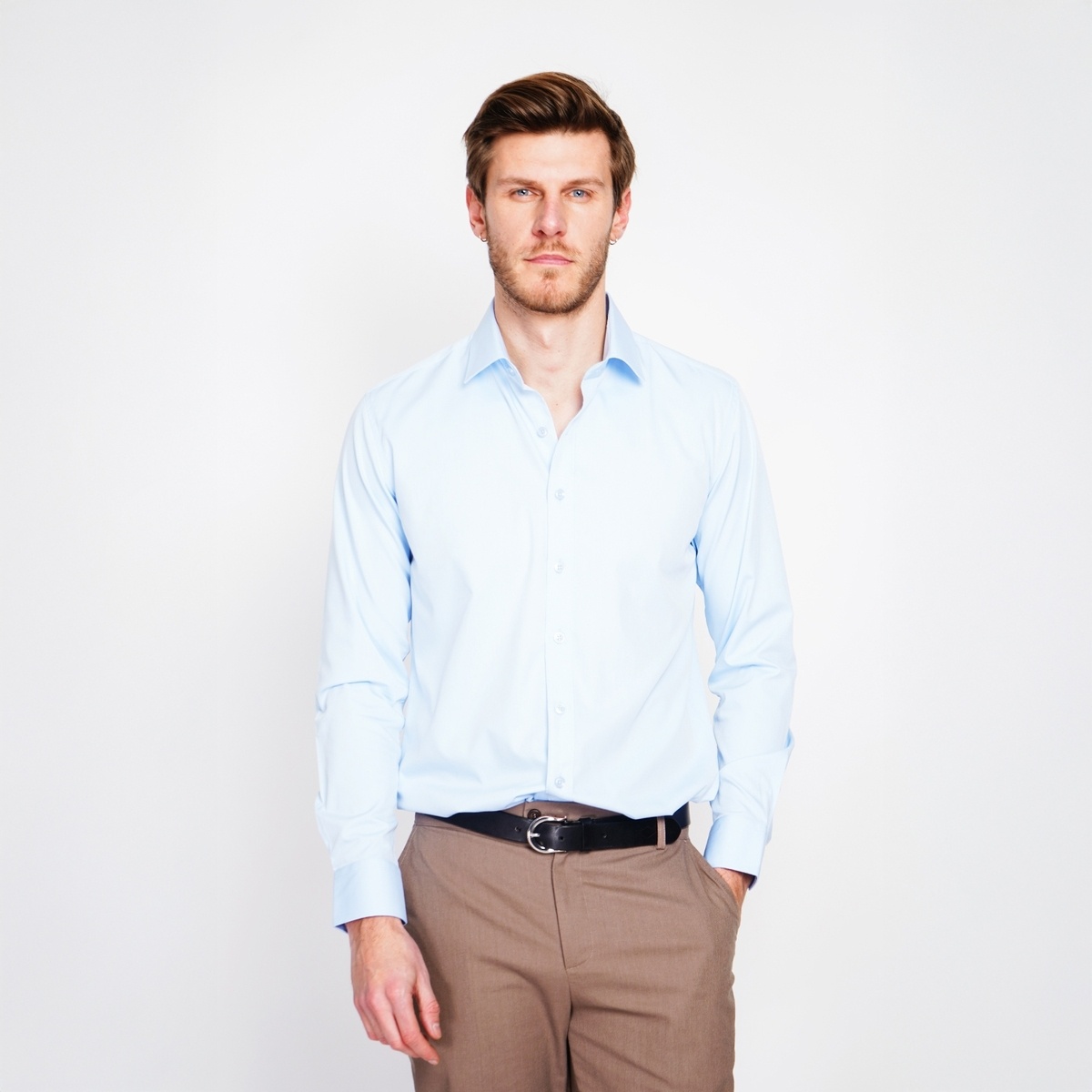 Deze herenblouse is een stijlvol recht model blouse met klassieke kraag, tweeknoops manchet en een moderne uitstraling. Gemaakt van een stofmix met bamboe, polyester, microvezel en spandex voor optimaal draagcomfort en een perfecte pasvorm.