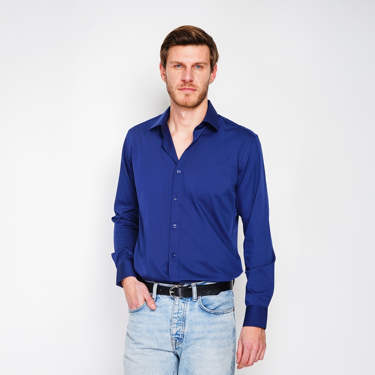 Deze herenblouse is een stijlvol recht model blouse met klassieke kraag, tweeknoops manchet en een
