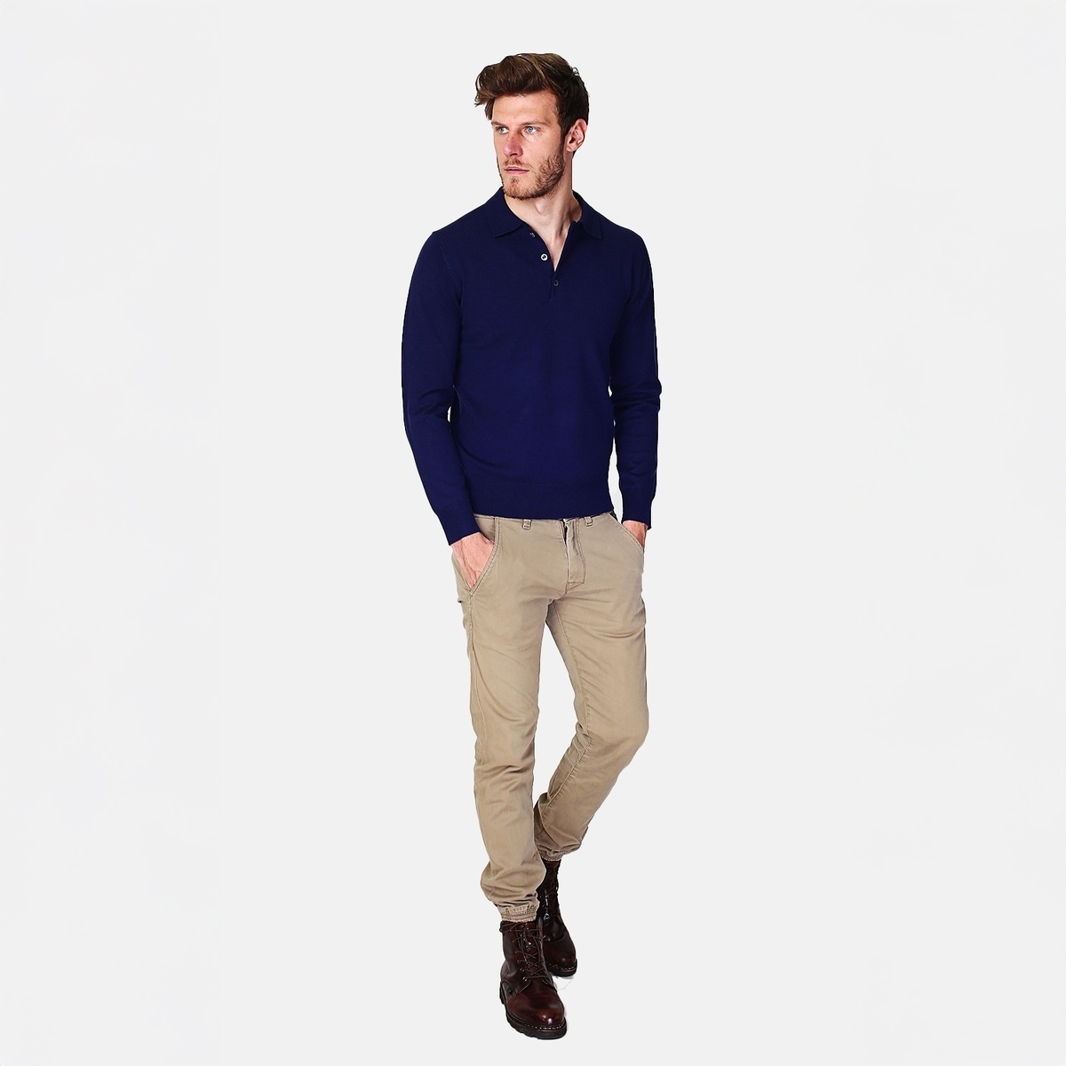 Dankzij de kraag met knoopsluiting heeft de trui een subtiel onderscheidend detail. Dit maakt hem perfect om casual te dragen met een spijkerbroek, maar ook stijlvol te combineren met een chino of pantalon voor een meer geklede look. Een echte allrounder in de garderobe van elke man.