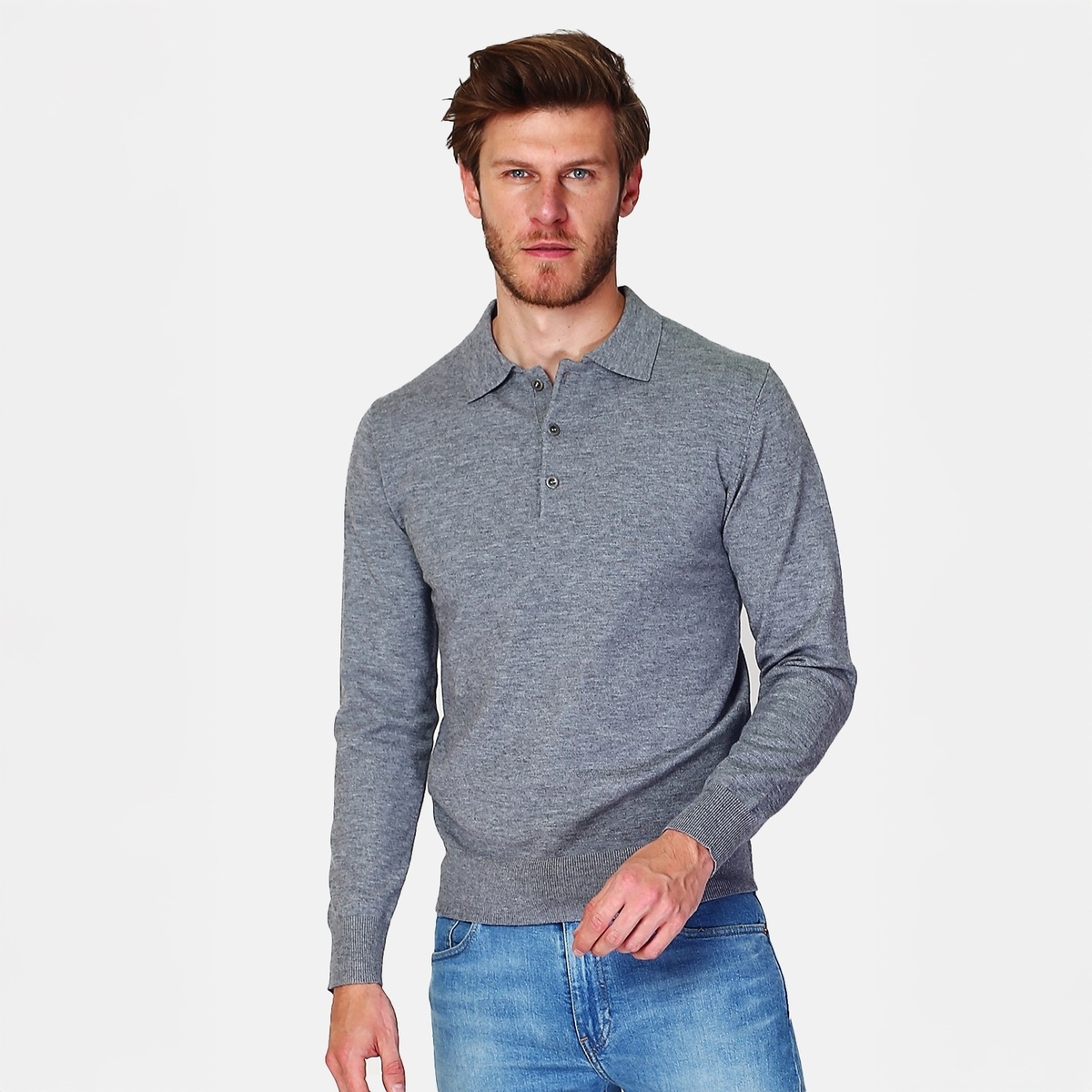 Deze herentrui heeft een kraag met knoopsluiting, lange mouwen en een comfortabele pasvorm. Dankzij de mix van viscose, kasjmier en elastaan voelt hij zacht aan, is hij licht rekbaar en biedt hij een elegante look voor elke gelegenheid.