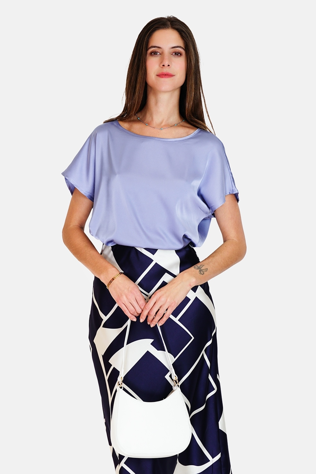 Het ontwerp is zorgvuldig afgestemd op een vrouwelijke pasvorm, waardoor uw figuur mooi tot zijn recht komt. De lichte stretch in de stof zorgt ervoor dat de top comfortabel aansluit zonder te knellen.