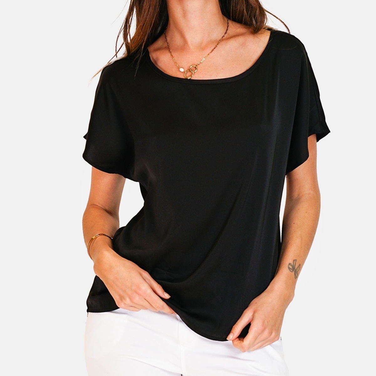 Dankzij de combinatie van polyester en viscose behoudt deze top zijn vorm, zelfs na meerdere wasbeurten. Zo geniet u lang van dit stijlvolle kledingstuk.