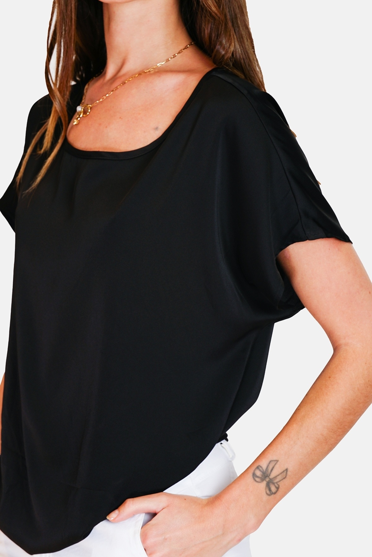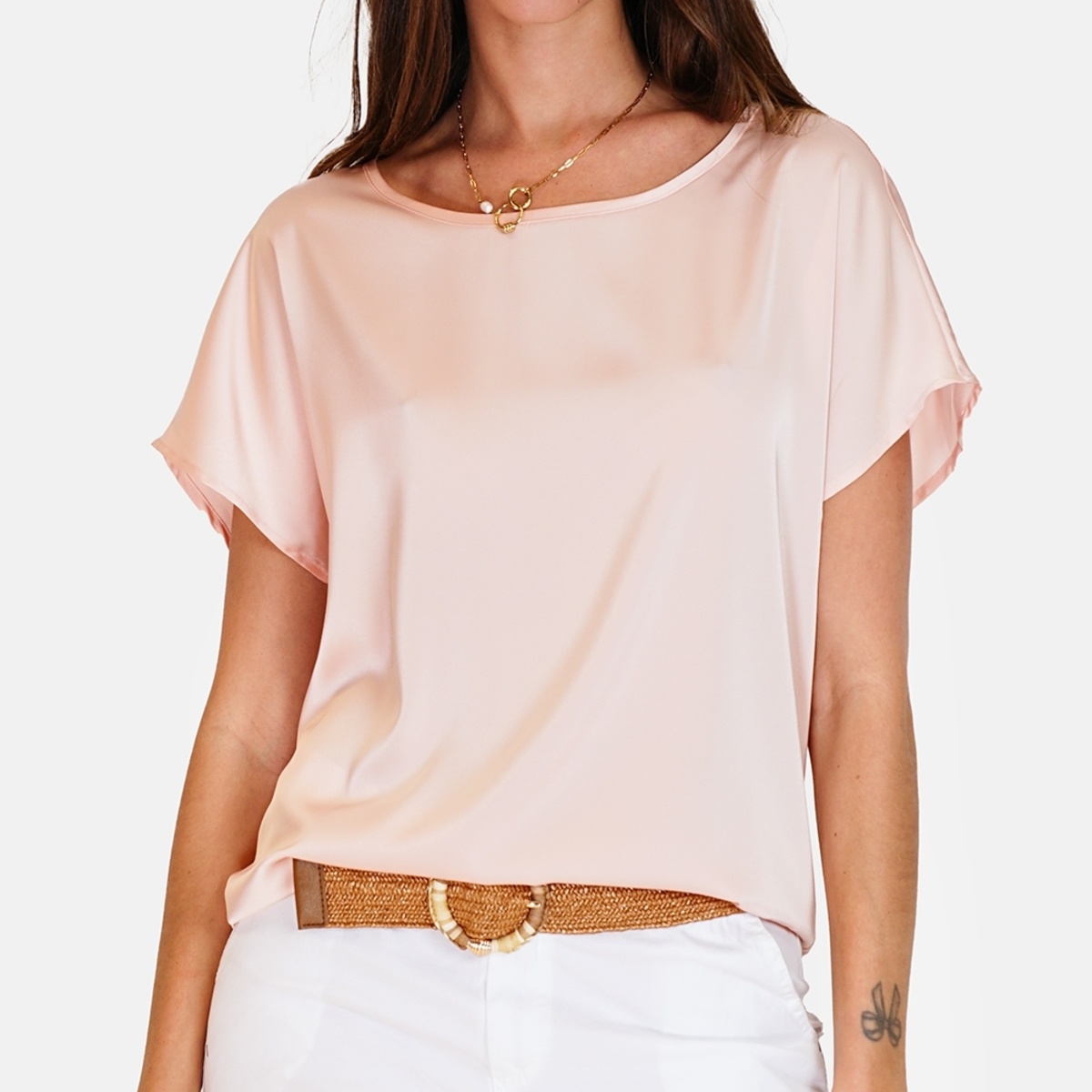 Deze top is gemaakt van een hoogwaardige mix van polyester, viscose en elastaan. Dit zorgt voor een zachte en soepele stof die prettig aanvoelt op de huid en mooi om uw lichaam valt.