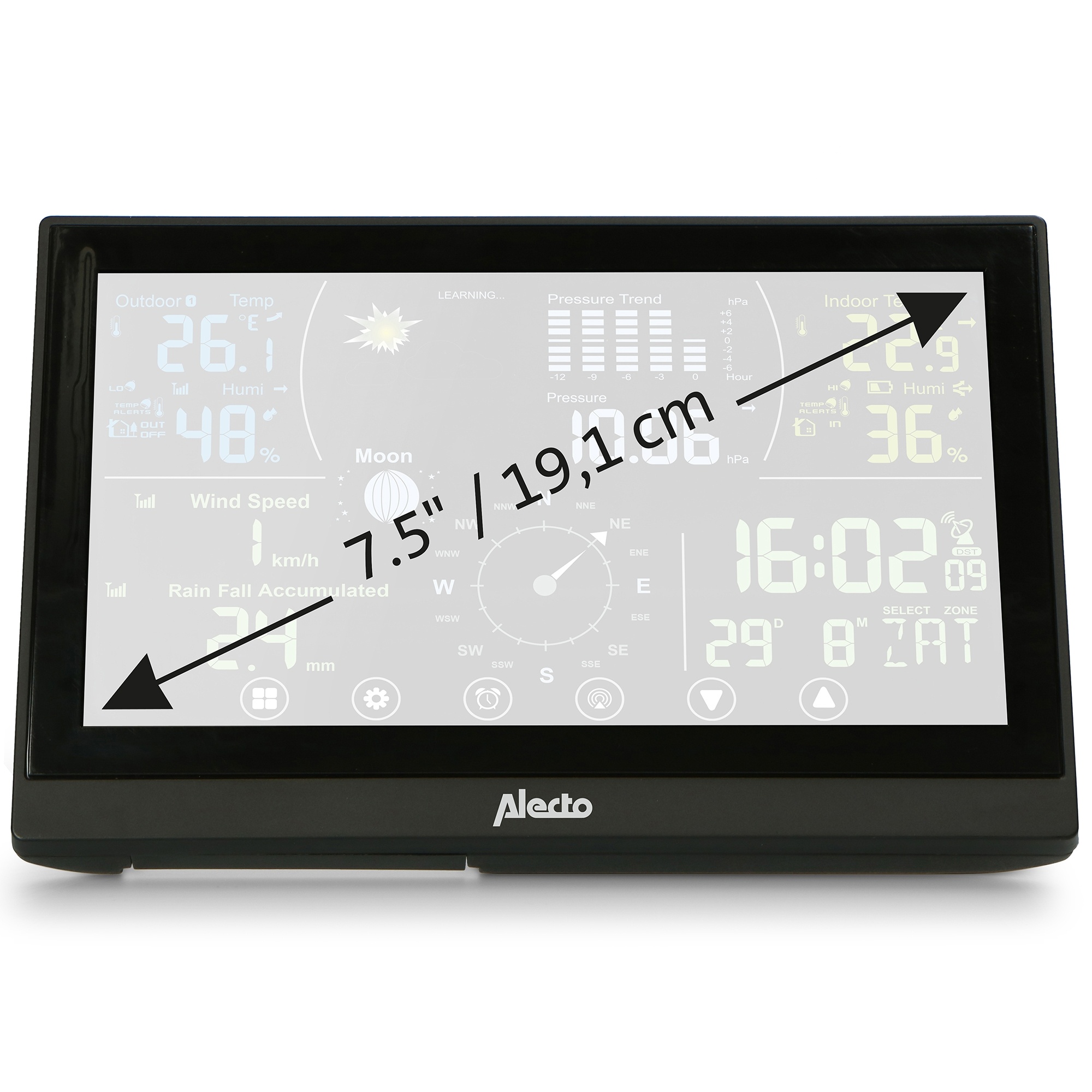 • Duidelijk verlicht display 7.5” / 19,1 cm