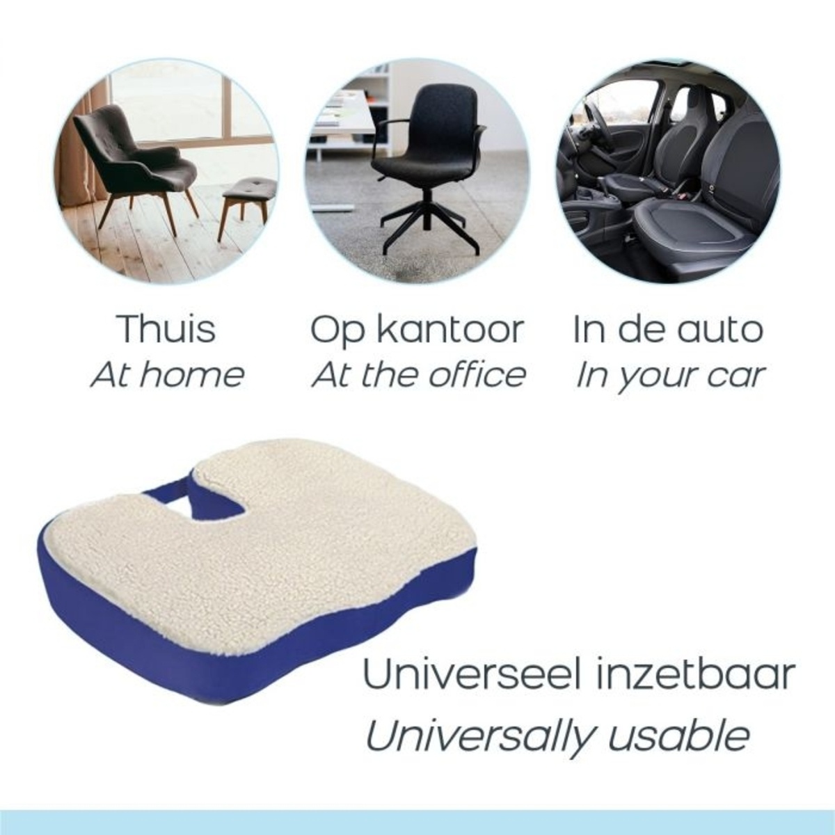 De laag met gel zorgt ervoor dat het universele zitkussen in de winter lekker warm aanvoelt en in de zomer koel blijft. Dit draagt bij aan een verhoging van het zitcomfort. Het lichtgewicht kussen is compact en kan gemakkelijk overal mee naartoe gedragen worden. Het gelkussen is te gebruiken in de auto, op kantoor of thuis op een stoel of de bank.